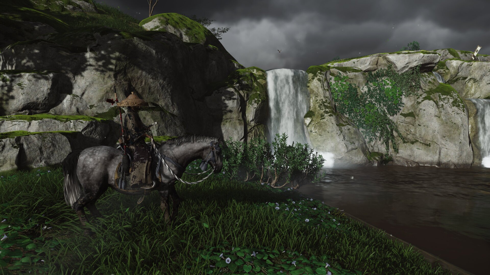 Afterwards i went and freed another settlement and found this little waterfall before getting off, it’s a cozy little place so i think Jin would appreciate getting a rest here. It almost reminds me a little of uncharted with it’s Jungle’s and everything. Honestly i sometimes see bits of other games in this and i think thats really cool.